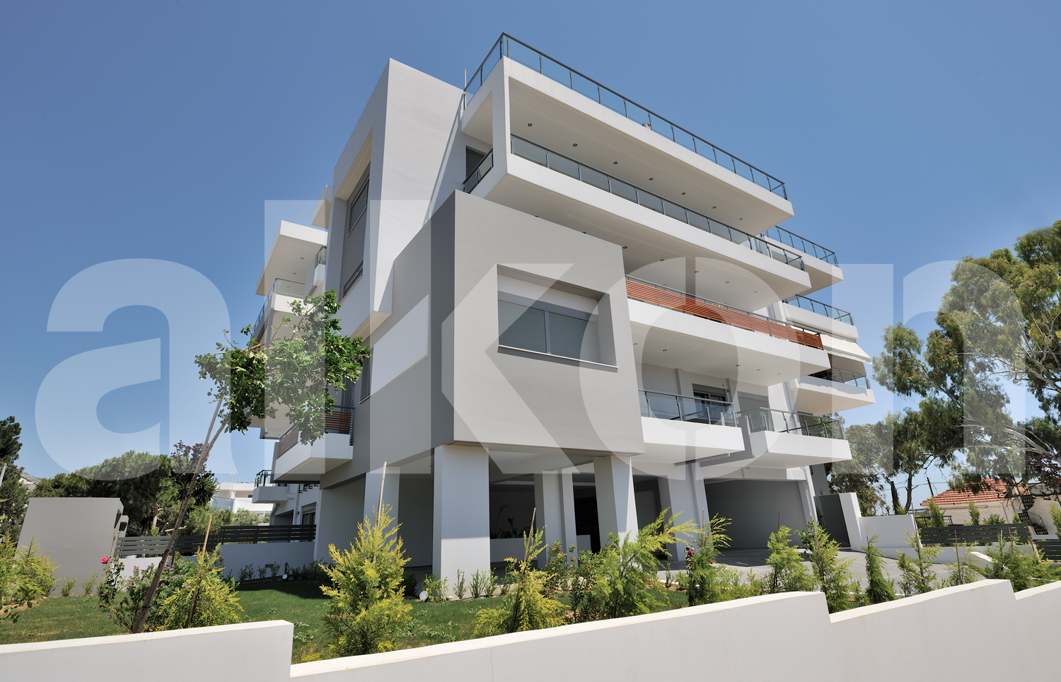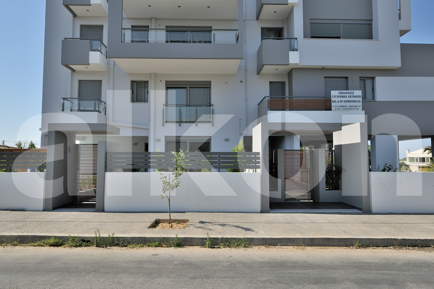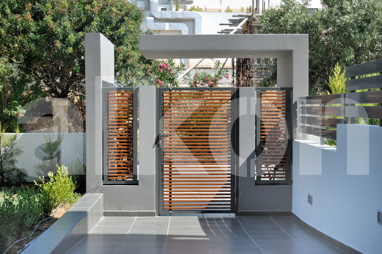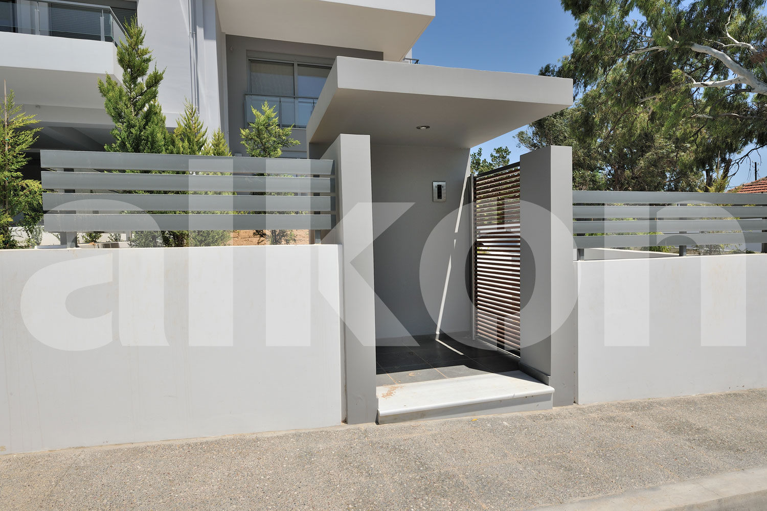 Block of flats in Alimos alkon manufactured and installed: Aluminium frames in ral grey colour Electric aluminium roller shutters with polyurethane louvers Iron structures – opening & sliding doors – balcony railings – Garden fencing